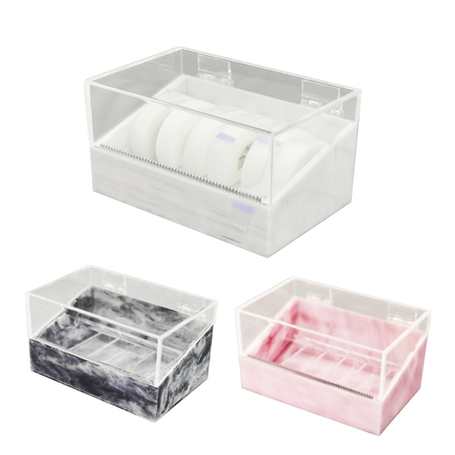 Lash & Brow Co. Supplies Marble Tape Dispenser is a great way to store your lash tape/s for easy access and cutting.