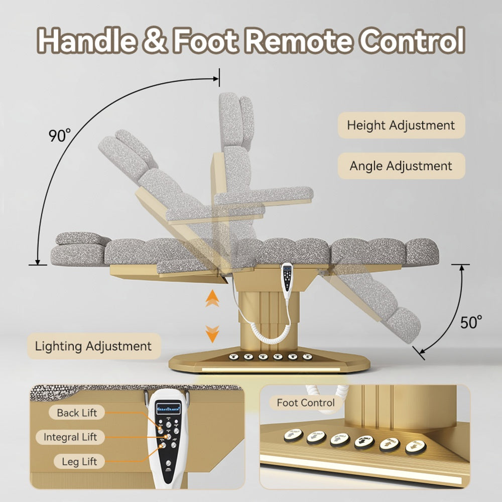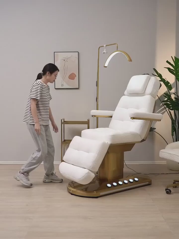 Its plush memory-foam cushioning, premium upholstery and whisper-quiet electric adjustments ensure every treatment feels indulgent, while its durable steel frame provides the strength and stability required for everyday salon use.
